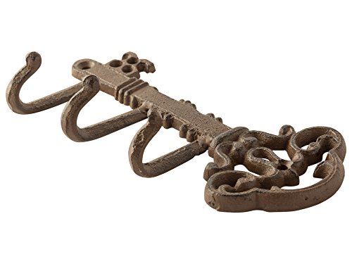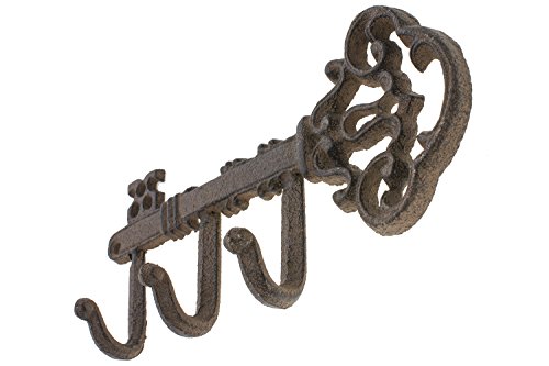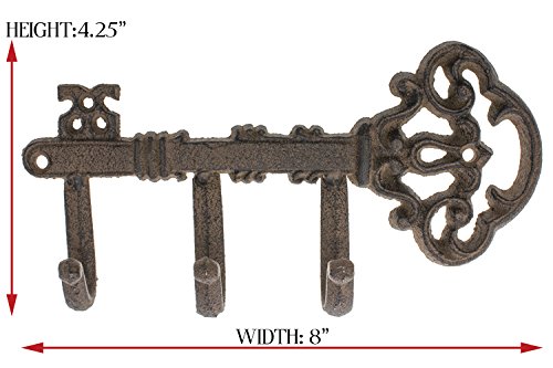 Decorative Wall Mounted Skeleton Key Holder | Vintage Key With 3 Hooks | Wall Mounted | Rustic Cast Iron | 7.9 x 4.1"- With Screws And Anchors By Comfify