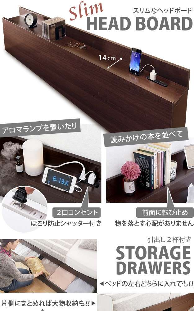 ●ロースタイル 省スペース スリムヘッドボード 収納 引き出し コンセント 敷布団 敷きふとん 抗菌防臭布団 防ダニ布団 防ダニ加工 吸汗速乾 軽量 軽い 厚い