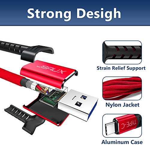 - 【Military grade material】: JSAUX USB Type C Cable Adds the strong military fiber, the most flexible, powerful and durable material, makes tensile force increased by 200%, Special Strain Relief Support design, can bear 10000+ bending test, protect the most vulnerable joint of the usb type c cable, Premium Aluminum housing adds the durability of the cable.