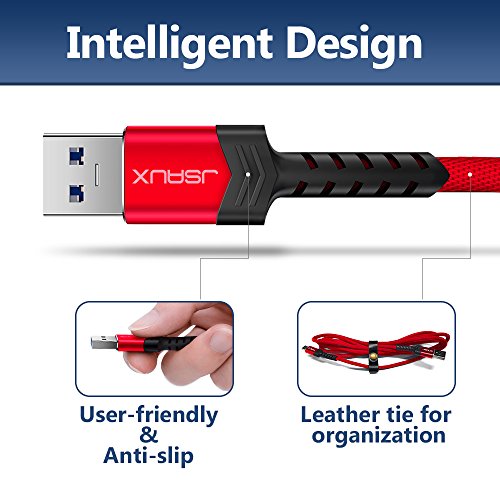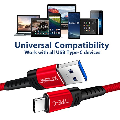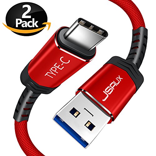 USB Type C Cable,JSAUX (6.6FT) USB 3.0 to USB C Cable Fast Charger Nylon Braided Cable for Samsung Galaxy Note 8 S8 plus,Google Pixel XL,Moto Z Z2,LG V30 G5 G6 V20 Nintendo Switch More(Red 2 Pack)