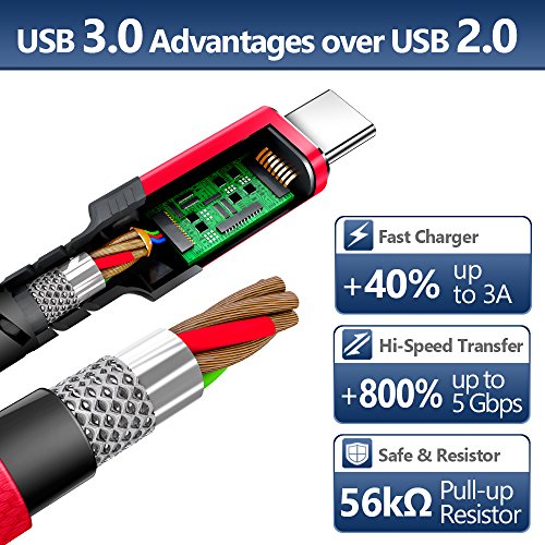 - 【Fast Charging and Sync】: Transfer speed up to 5 Gbps, 3A Fast Charger, Data Transfer and Power Charging 2 in 1 USB-C Cable.