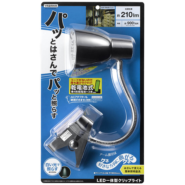 ●ヤザワ Y07CFLE03W04BK 電池式フレキシブルLEDクリップライト ブラック