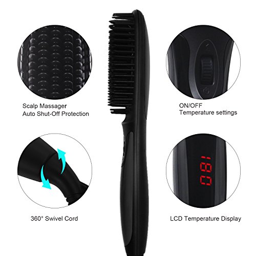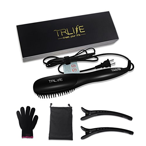 TRLIFE Hair Straightener Brush Electric Digital Anion Ceramic Hair straightening Comb ,Anti Scald with Glove Pouch,Sweet Gift for Mothers Girlfriend Wife Women