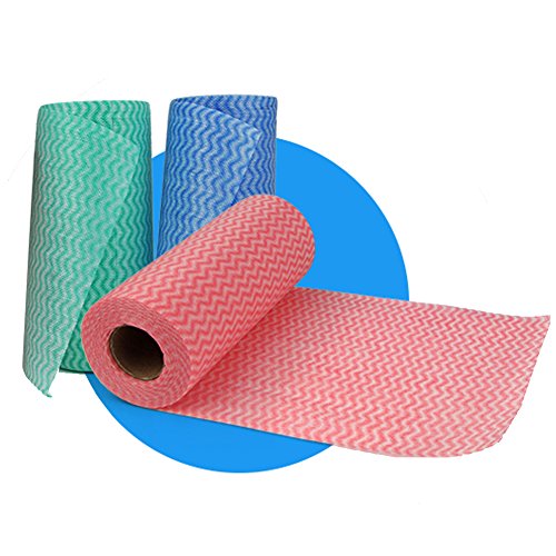 This non-woven cleaning cloth is nonstick and multipurpose. Wide use for : dishes, range hood, shoes, table, floor, windows etc. You can use it as disposable rags or reuse for 4 to 7 times. Each roll contains 50pcs.Scope of application: all kinds of kitchen utensils, utensils, floor, automobile, household appliances, ceramic tile, glass, leather shoes, etc.. And wet and dry dual-use, is a good helper for home life and public places clean Environmental health, multiple functions: German wave patterns non-woven cloth by health clean not weaving 100% natural wood fiber processing and excellent products accord with environmental protection. Sanitary, clean, strong water absorption, no toxins, soft wash resistant, not easy to live bacteria, there is a rub that the effectiveness of the net. 0