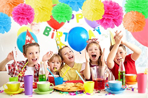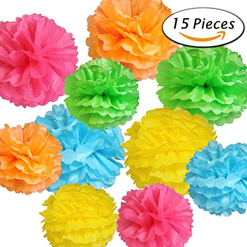 Paxcoo 15 Pcs Color Tissue Paper Pom Poms with 12 Rolls Crepe Paper Streamers for Party Decorations
