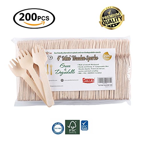 Gmark Eco-Friendly 4" Mini Wooden Spork 200 ct, Biodegradable Compostable Birchwood Fork Spoon 2-in-1 Utensil (200pcs/bag) GM1058