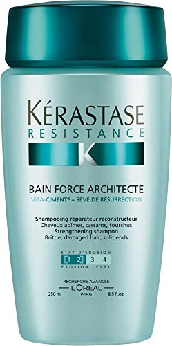 -. Feature : Kerastase Resistance Bain Force Architecte Shampoo (For Brittle, very Damaged Hair, Split Ends) - 250ml/8.5oz / A hair-rebuilding & reinforcing shampoo / Formulated with advanced Ciment-Cylane Complex