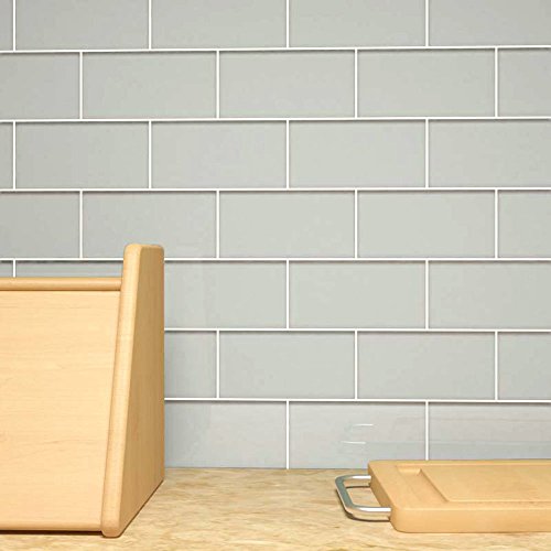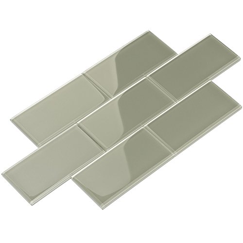 Giorbello Glass Subway Backsplash Tile, 3 x 6”, Light Gray, Case of 44 Tiles
