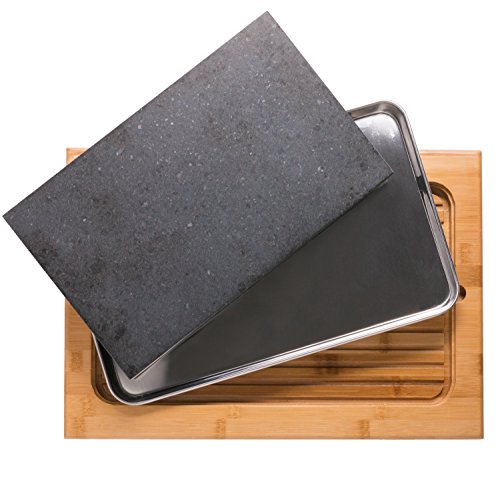 Cooking Stone- Lava Hot Stone Cooking Platter and Cold Lava Rock Hibachi Grilling Stone w Bamboo Platter is the perfect way to cook meat, fish, vegetables and more right at the dinner table. Just heat your steak stone in the oven, remove and place on the stainless steel tray and bamboo platter-- and cook! Made from hand-crafted basalt stone, the steak stone is easy to use, easy to clean and a safe way to enjoy your favorite meals.Feature