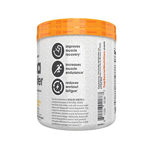 Top Secret Nutrition's BCAA RE- IGNITER is a phenomenally delicious and refreshing combination of BCAA's, Natural Astaxanthin (AstaPure) and Coconut Water infused electrolytes