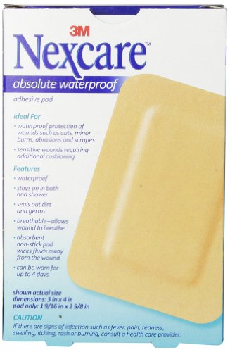 Nexcare Absolute Waterproof Adhesive Gauze Pad, 3 Inches X 4 Inches