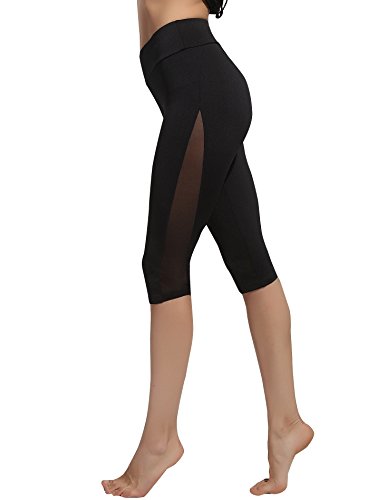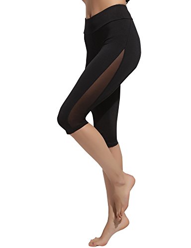 ChinFun Women's Mesh Panel Workout Running Yoga Capri Pants Active Leggings
