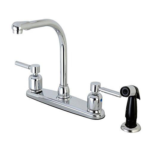Kingston Brass FB751DL Concord 8-Inch Center Set High-Arch Kitchen Faucet with Black Plastic Sprayer, Polished Chrome