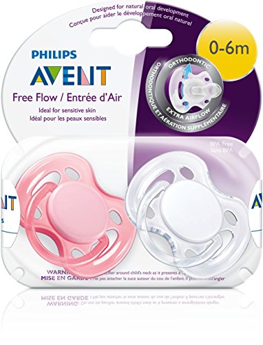 Philips AVENT Freeflow Pacifier BPA, Free Pink / White, 0-6 Months (Pack of 2)