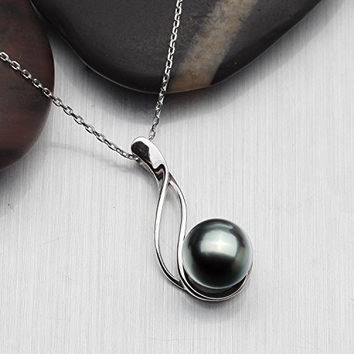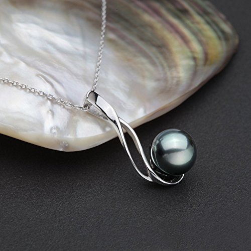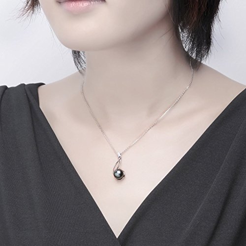 -. Title : VIKI LYNN Tahitian Pearl Necklace, Sterling Silver 9-10mm Round Tahitian Cultured Pearl Pendant Necklace for Women