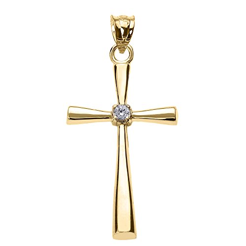 -. Title : Solitaire Diamond Cross Pendant in 14k Yellow Gold