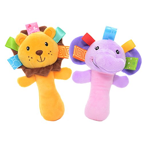 Lazada Cartoon Lion Elephant Baby Soft Plush Hand Rattle Toys Infant Dolls 2 PCS Random