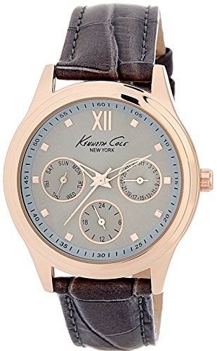 Kenneth Cole New York 10029560 Women's Multifunction Rose-Gold Tone Analog Watch Grey Leather Strap