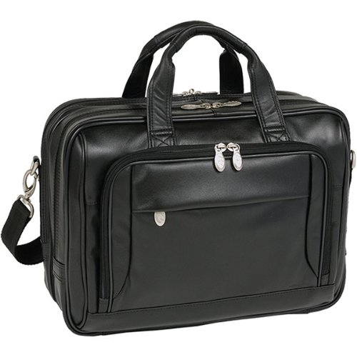 Studio : Mcklein Publisher : Mcklein Binding : Personal Computers Product Description Front zipper pocket provides storage space for small miscellaneous items. Front organizer with storage space for media devices, cell phone, business cards, key holder and pens. Front compartment features file divider for documents and has an expandable feature to provide 30% more storage space. Back Compartment padded with high-density foam to protect laptops up to most 15.6"in size. Smart Zipper Attachment allows transport on extended handles of other rolling cases luggage. Advanced, non-slip, shock absorbing neoprene Comfort Flex Shoulder Strap stretches for comfort, alleviating body strain. 16.5"x5.5"x12" 0
