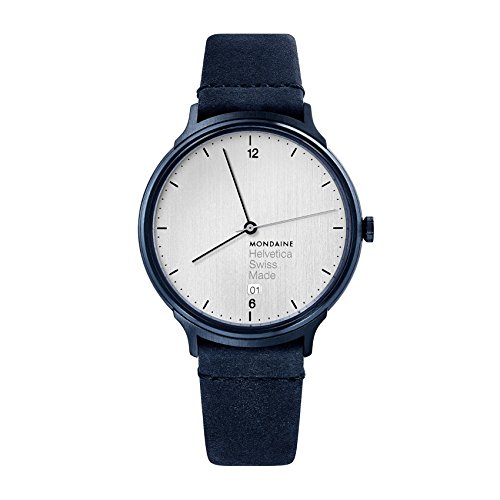 Mondaine 'Helvetica' Swiss Quartz Stainless Steel and Leather Casual Watch, Color Blue (Model: MH1.L2210.LD)