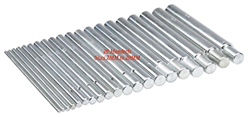 20 Mandrels (2, 2.5, 3, 3.5, 4, 4.5, 5, 5.5, 6, 6.5, 7, 7.5, 8, 8.5, 9, 9.5, 10, 10.5, 11, 11.5, 12)mm