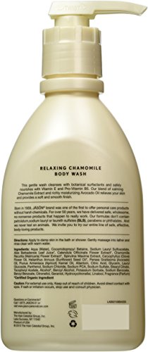-. Binding : Misc. -. Brand : Jason -. Feature : Contains chamomile extract and avocado oil / Vitamin E and pro-vitamin B5 nourishes skin / Pure and natural -. Label : Jason -. Manufacturer : Jason -. ProductGroup : Beauty -. ProductTypeName : BEAUTY -. Publisher : Jason -. Studio : Jason -. Title : Jason Relaxing Chamomile Pure Natural Body Wash