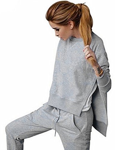 Material: Polyester 2 Colors: Black, Gray Collar: O-Neck Sleeve: Long Sleeve Style: Casual Pattern: Solid Occasion: Casual Unique style, create stunning curves, make you more beautiful, fashion, sexy and elegant. Package Content: 1 x Women Sportwear Set Top Measurement: Asian S (US XS(4) UK 6)----Shoulder 35/13.65----Sleeve 58/22.62----Chest 86/33.54----Top Front Length 49/19.11----Top Back Length 60/23.4 Asian M (US S(6) UK 8)----Shoulder 36/14.04----Sleeve 59/23.01----Chest 87/33.93----Top Front Length 51/19.89----Top Back Length 61/23.79 Asian L (US M(8-10) UK 10)----Shoulder 37/14.43----Sleeve 60/23.4----Chest 89/34.71----Top Front Length 52/20.28----Top Back Length 63/24.57 Asian XL (US L(12) UK 14)----Shoulder 38/14.82----Sleeve 61/23.79----Chest 96/37.44----Top Front Length 53/20.67----Top Back Length 63.5/24.76 Pants Measurement: Asian S (US XS(4) UK 6)----Waist 60-70/23.4-27.3----Hip 86/33.54----Thigh 40/15.6----Pants Length 92/35.88 Asian M (US S(6) UK 8)----Waist 61-71/23.8-27.7----Hip 87/33.93----Thigh 44/17.16----Pants Length 92.5/36.07 Asian L (US M(8-10) UK 10)----Waist 62-72/24.2-28.1----Hip 88/34.32----Thigh 45/17.55----Pants Length 93/36.27 Asian XL (US L(12) UK 14)----Waist 63-73/24.6-28.5----Hip 90/35.1----Thigh 48/18.72----Pants Length 99/38.61 0