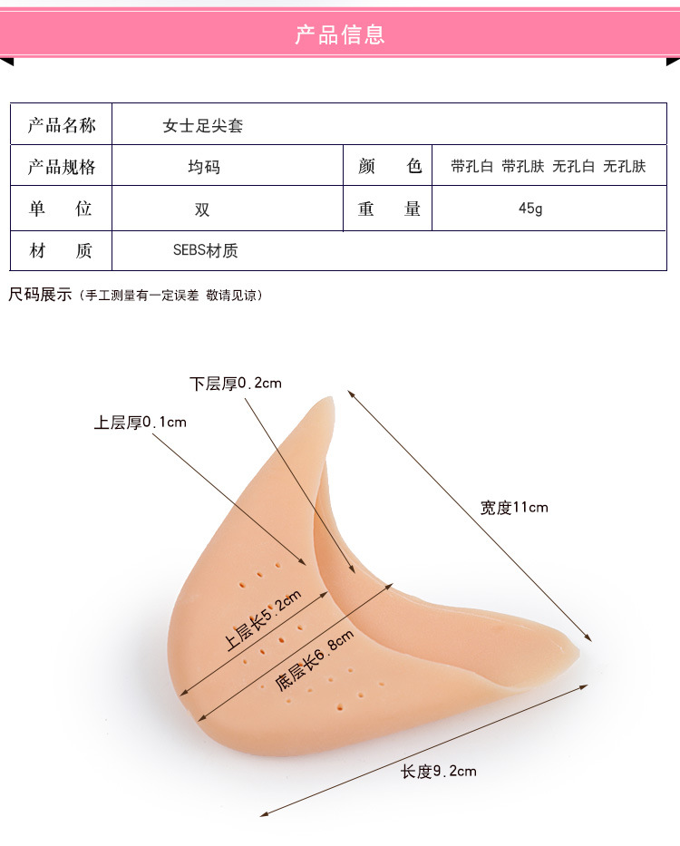 つま先ポインターセットSEBS厚手スーパーソフトハーフコードインソールバレエレディーストゥカバー