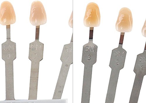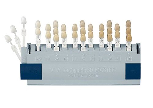 First, use the top row of teeth on the Toothguide (1M1, 2M1, 3M1, 4M1, 5M1) to determine lightness level, making a simple yes/no decision as to whether the Toothguide tooth matches.