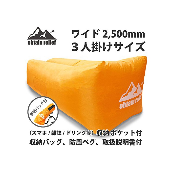 원본상품명: obtain relief エアソファ エアソファ インフレタブルソファ 250cm 3人掛けサイズ 2017年版新タイプ ポケット ペグ 納バッグ付 オレンジ