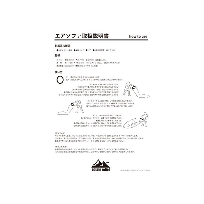 Obtain relief obtain relief 에어 소파 에어 소파 인플레이션―타부루소후 250cm 3명 걸이 사이즈 수납 가방 2017년 판신타입 포켓 페그(말뚝) 수납 가방부