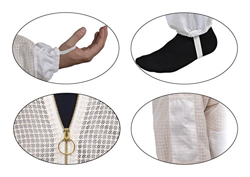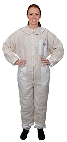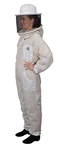 Aerated beekeeper suit with self-supporting round veil, heavy duty brass zippers, durable polycotton-lined pockets, and deluxe canvas carrying case