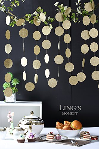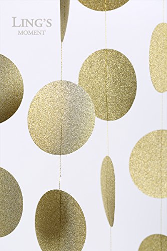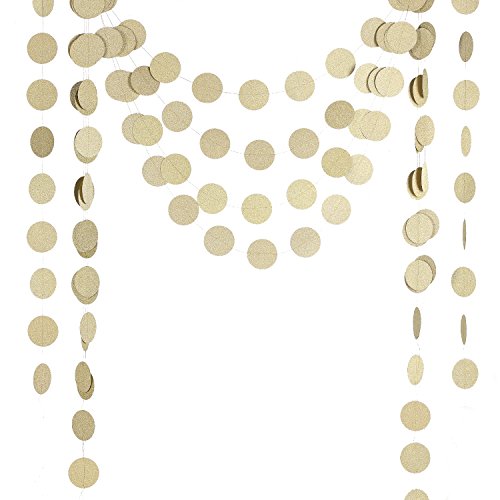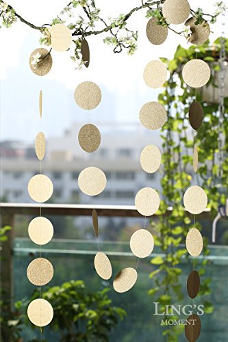 Ling's moment Circle Dots Paper Garland ( 2.5" Dots, 9 Feet, Pack of 4 ) for Wedding, Bridal Showers, Birthday Party, Baby Shower, Event & Party Supplies - Champagne Gold Glitter
