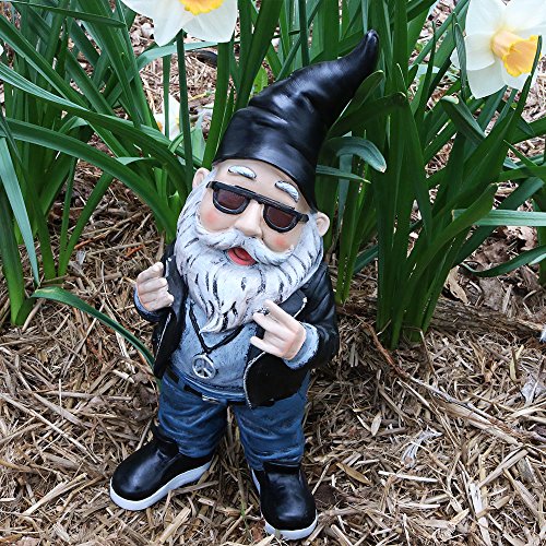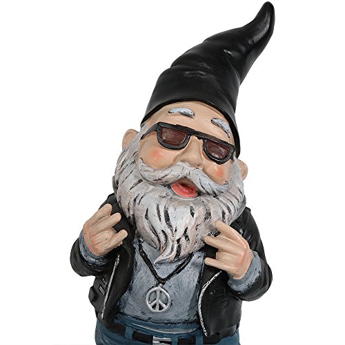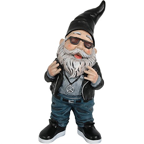 Sunnydaze Garden Gnome Randy The Rebel Biker, 14 Inch Tall