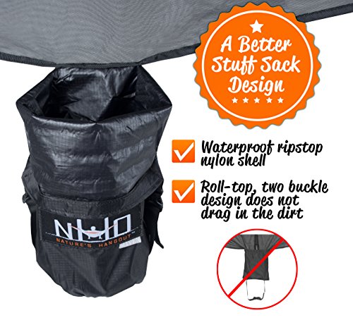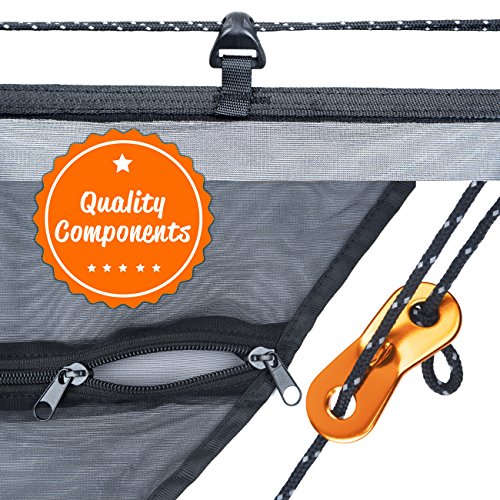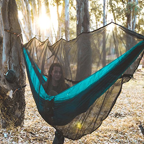Our hammock bug and mosquito net provides 360 degrees of insect protection for hammock enthusiasts and comes with 32 feet of reflective guyline, so you won't catch your head on the rope in the dark. Its superfine netting is guaranteed to keep out mosquitoes, ticks, no-see-ums, and a plethora of other insects, or you get your money back. The hammock bug net fits most hammock systems and is large enough to cover double hammocks. Durable zipper opening extends the entire length of the net for easy access, and is the best option for entering a double hammock with an installed mosquito net. A waterproof compression stuff-sack is attached that has a 2-sided buckle design, which won't drag in the dirt, and compacts to a backpack friendly, portable size, for your convenience.