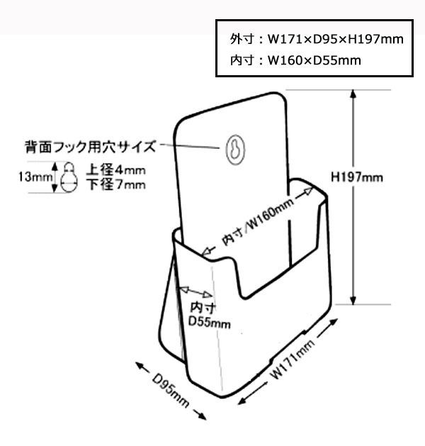 | インジェクション一体成型なので、デザインが美しく丈夫です。各種パンフレットやチラシ・カタログなどを展示・保管に便利です。背面にフック用の穴があるので、壁掛け用としてもご利用できます。 |