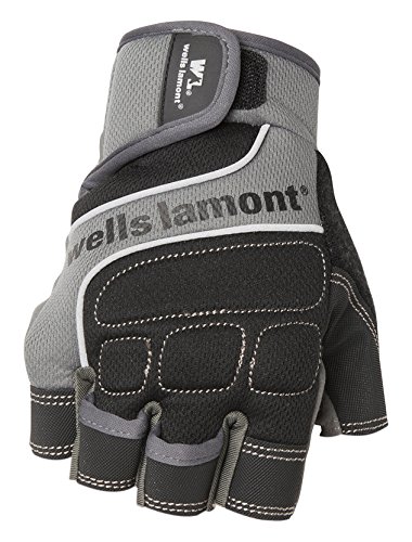 Wells Lamont Men's Fingerless Synthetic Leather Work Gloves, Grey, Large (841GL)