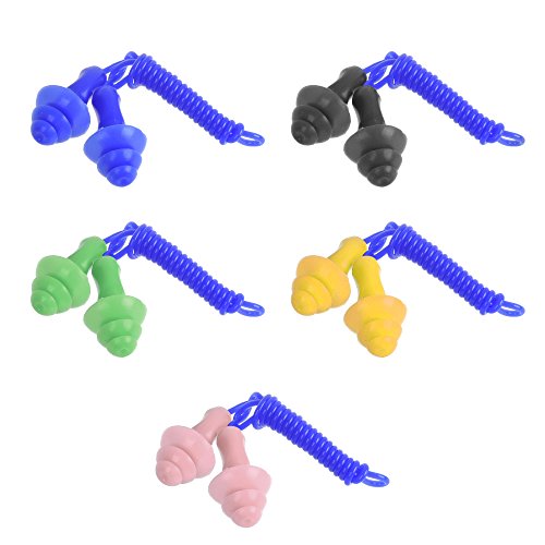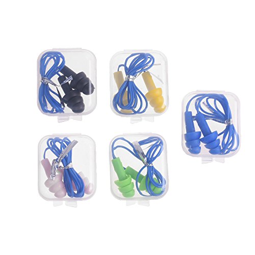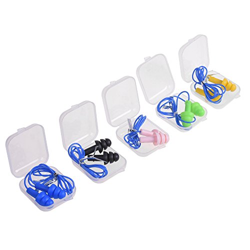 BCP 5 Sets Soft Waterproof Silicone Gel Corded String Ear Plugs for Swimming