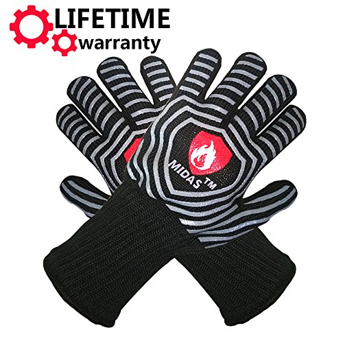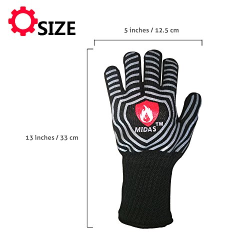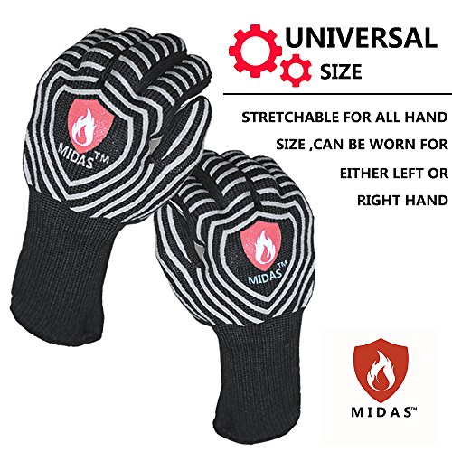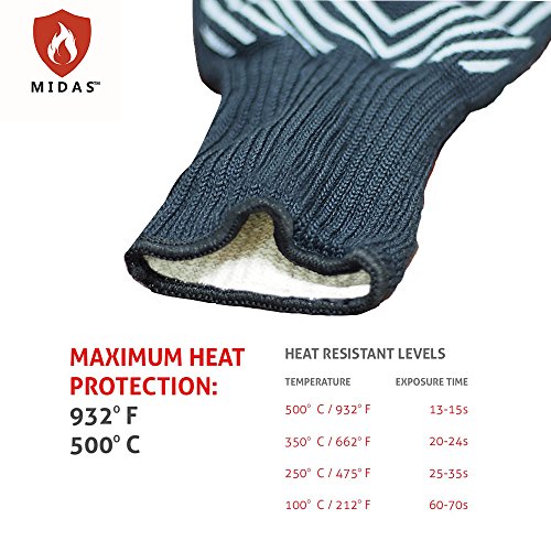 - ★MAXIMUM HEAT PROTECTION: Midas Heat Resistant Oven are designed to protect your hands from flames and high temperatures.Midas Oven Grill Gloves are certification to temperatures up to 932 °F (500 °C) .Perfect to protect your hand for grilling, smoking, cooking, baking, or handling super hot items in the kitchen and outdoors.