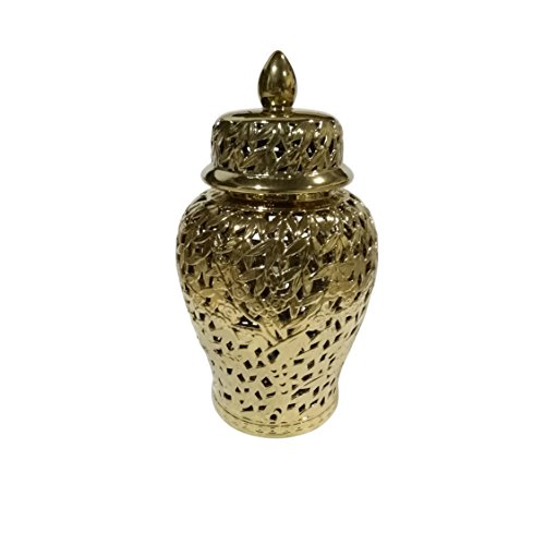 Sagebrook Home Pierced Ceramic Temple Jar, 13.75x13.75x24, Gold