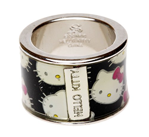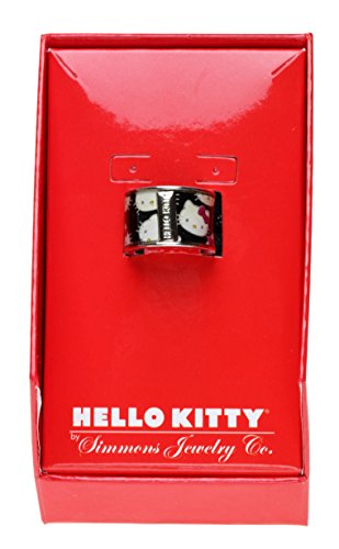 Fall In Love With Hello Kitty® Again! Introducing a fresh new twist on the world's beloved icon celebrated in a fun, fashionable jewelry collection. The whimsical collection of bracelets, earrings, rings, and pendants are stylish, sweet and must-haves for all ages. Adorable Hello Kitty ring is great for adding the right amount of cuteness to any of your outifits. This special beauty features Hello Kitty's face printed all over with her pink bow over a lovely black background. Size 6. Base metal, resin overlayFeature