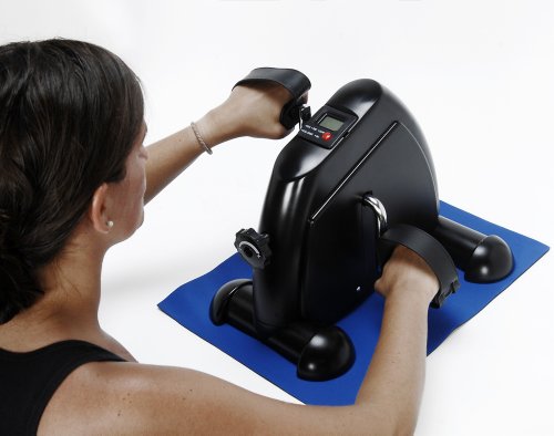 Enjoy low impact bicycle pedaling exercise from a chair or place on a table to exercise your arms.