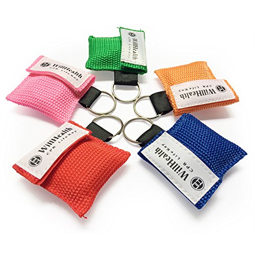 WillHealth 50 Pack CPR Pocket Mask CPR Mask KeyChain Kit Emergency Face Shields with One-way Valve Breathing Barrier for First Aid Rescue or AED Training