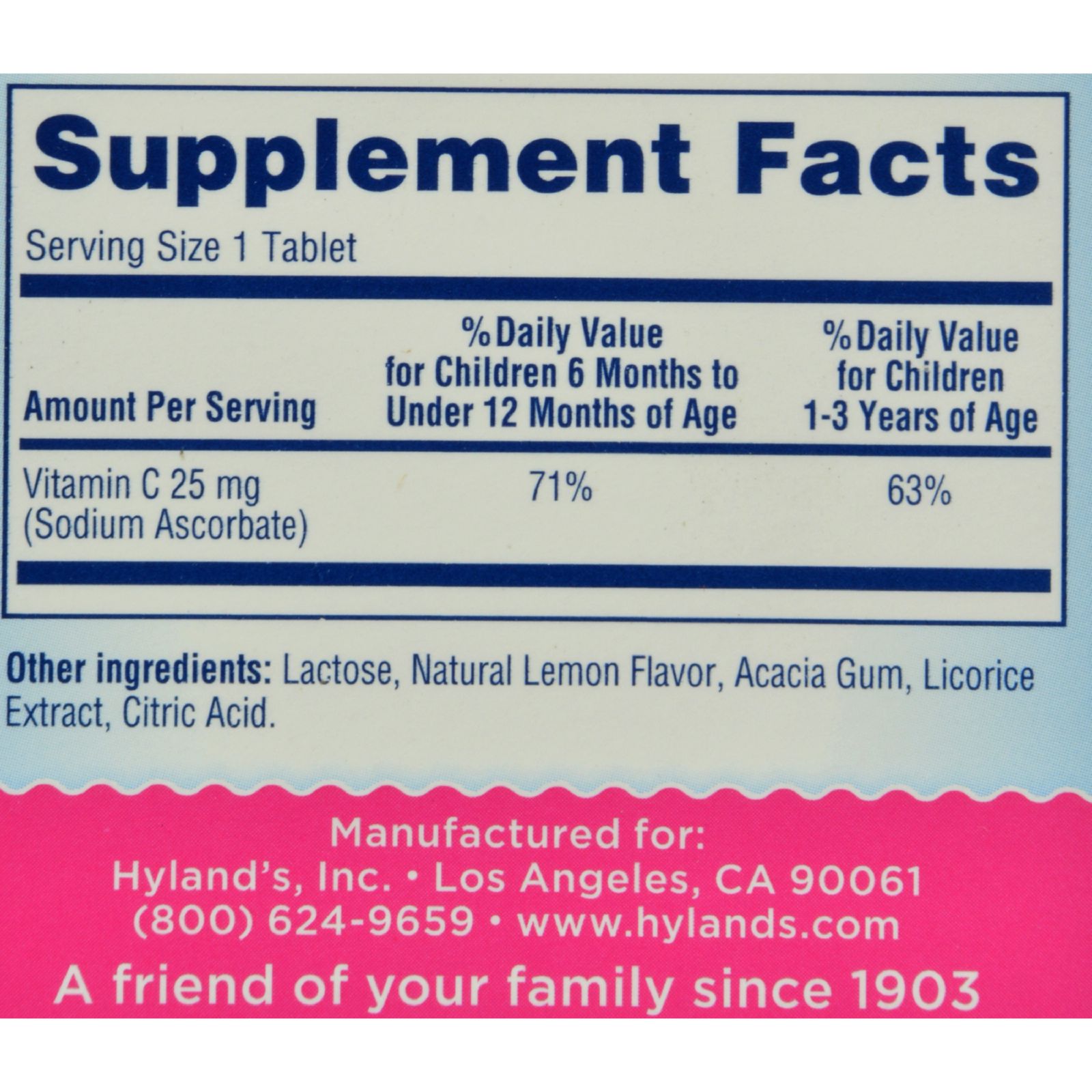 | Hyland's 비타민 C , 천연 레몬 맛, - 25 Mg - 125 정