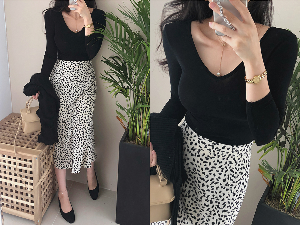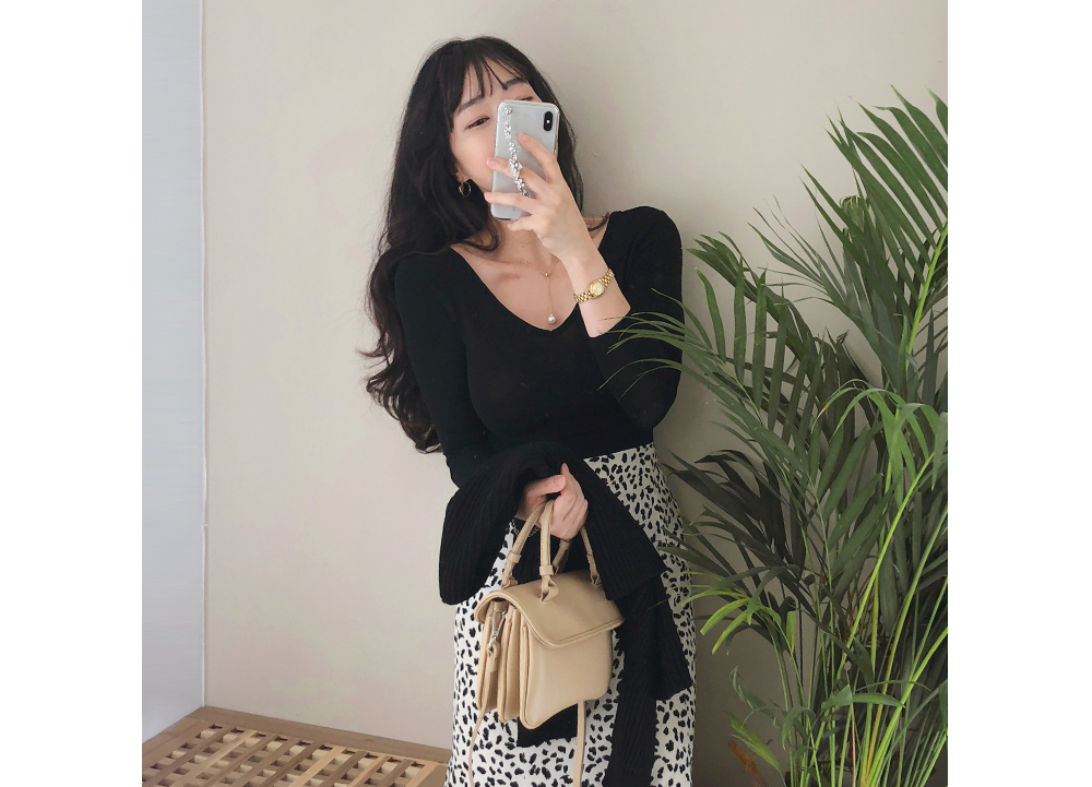 네크라인 어깨 한쪽 부분은 트임을 넣어