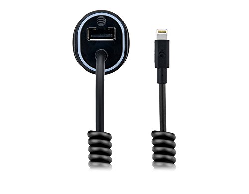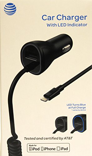 AT&T 4903G 3.4 Amp MFI Lightning Rapid Car Charger with Smart LED Charge Indicator for iPhone 8/7/X/SE/6s/6 Plus/6s Plus/7 Plus/8 Plus - Retail Packaging - Black