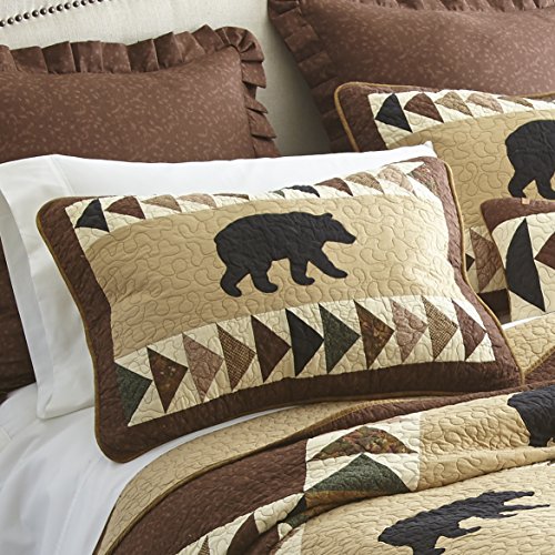 Donna Sharp Woodcut Bear King Sham, 20" x 36", Brown/Tan/Green/Black