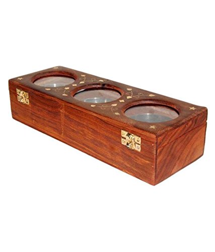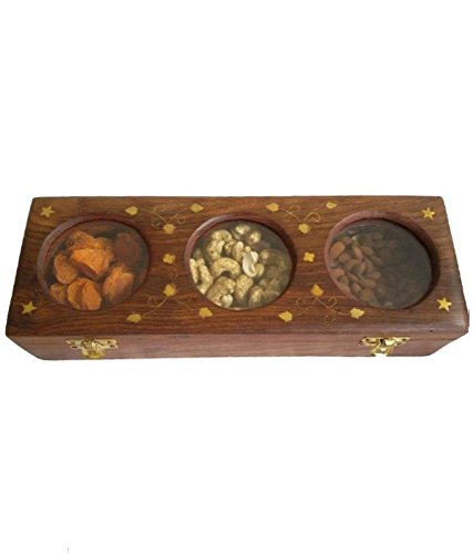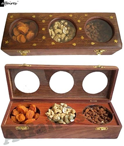 Wooden Dry Fruit Box / Masala Box / Spice Box With – 3 Storage Compartments for Decorative Accessories Gifting Christmas or Birthday by Affaires W-40156