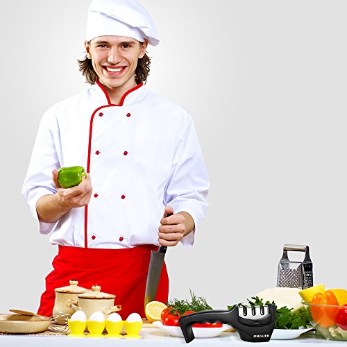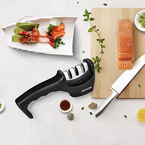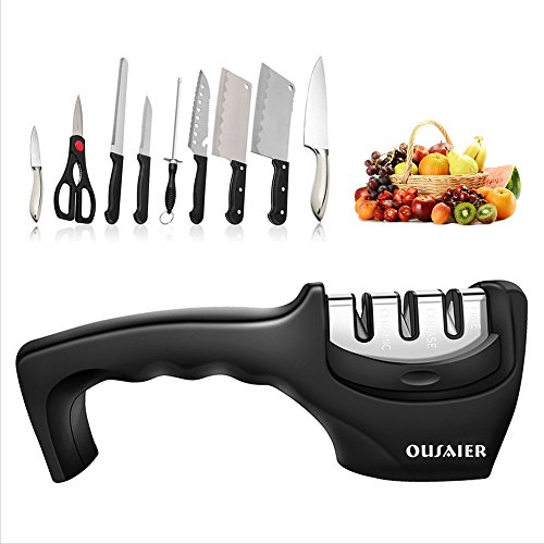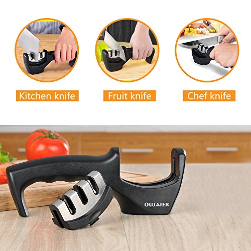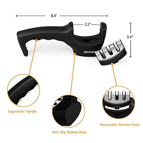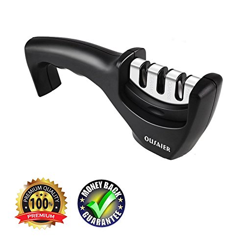Save time and money to choose Ousaier 3-Stage Knife Sharpener as kitchen little assistant! ●100% diamond abrasives.