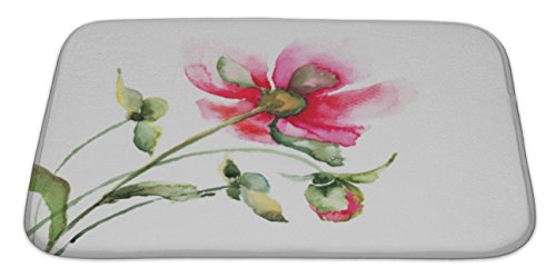 Gear New No Slip Microfiber Memory Foam Beautiful Peony Flower Bath Rug Mat, 34" X 21"